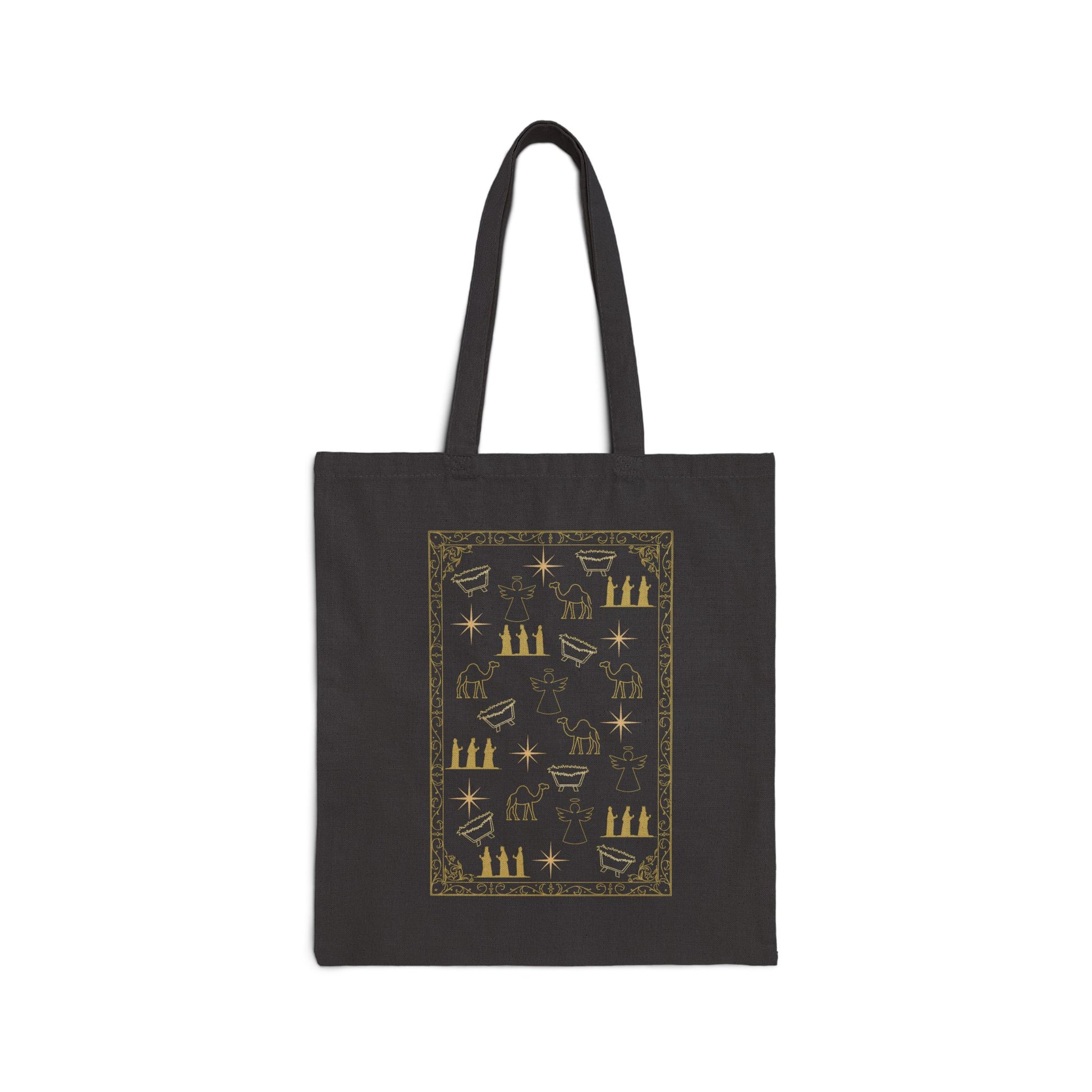 Take this elegant Christmas Collage tote bag with you to church this Christmas season. Featuring a gold simple yet meaningful design based on the story of the birth of Jesus Christ. Whether you're shopping, going to Bible study, or are giving it as a gift this tote bag is ideal for spreading your faith.