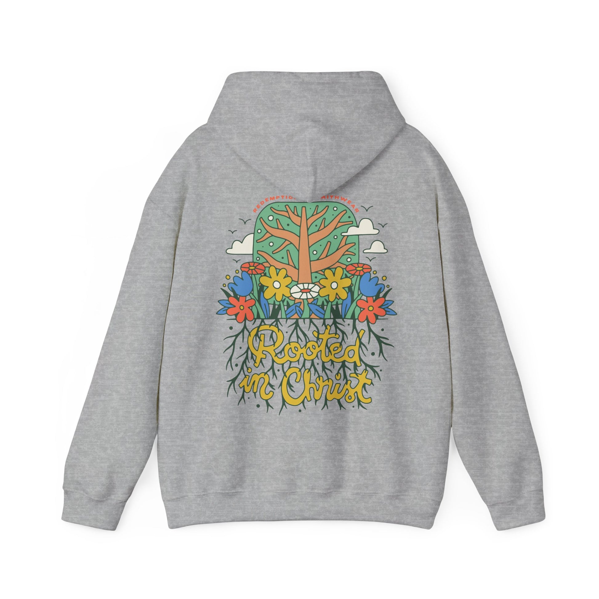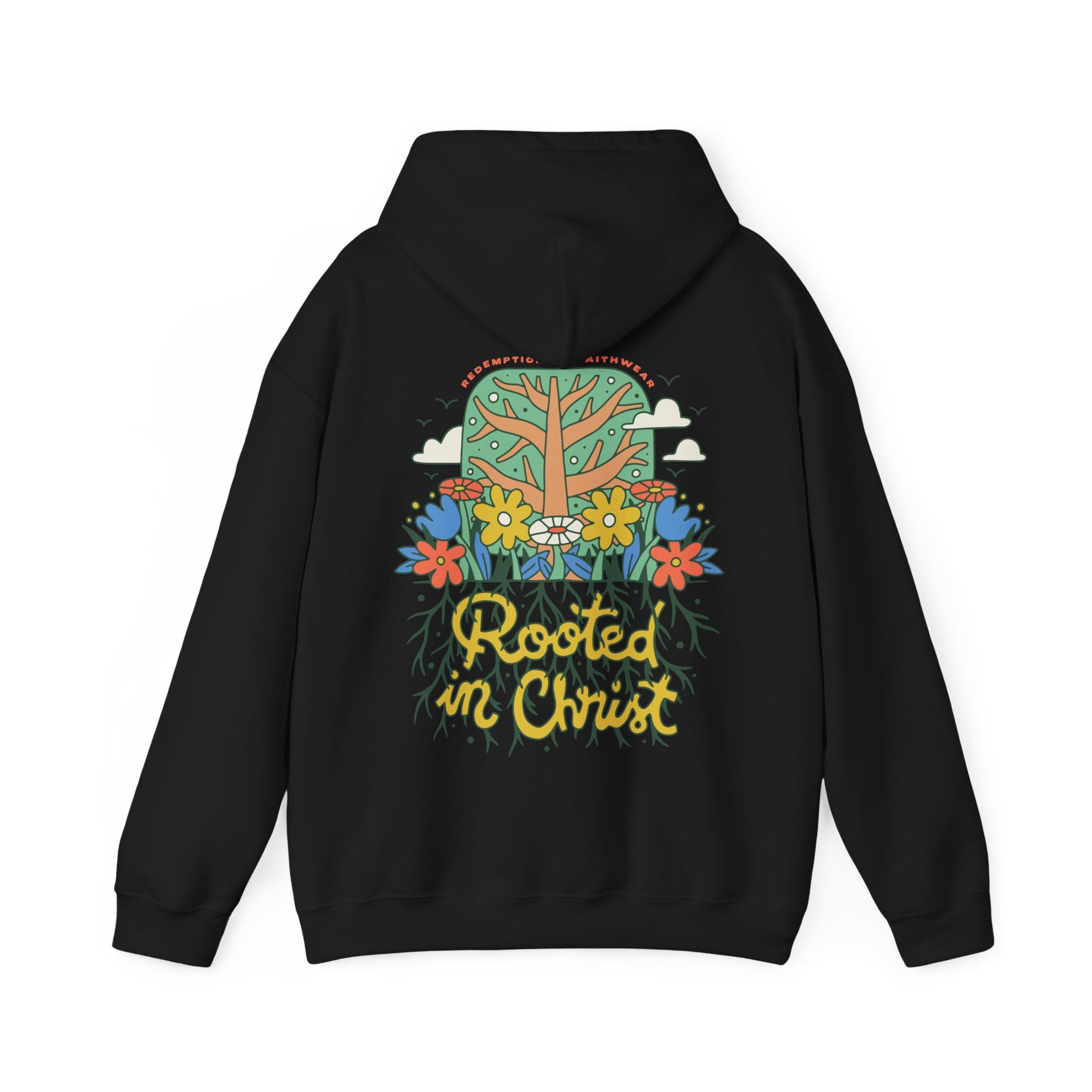 Wrap yourself in warmth with our Rooted in Christ hoodie. This cozy hoodie showcases a detailed illustration of a tree and flowers with sprawling roots and vibrant colored flowers entangled around the powerful words "Rooted in Christ". Perfect for those chilly days or relaxing nights, this rooted hoodie provides comfort and serves as a powerful declaration of faith. Fits as unisex, RUNS SMALL (check size & fit).